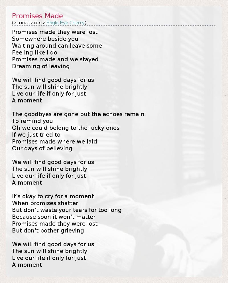 А как ты думаешь, о чем песня "Promises Made" ?