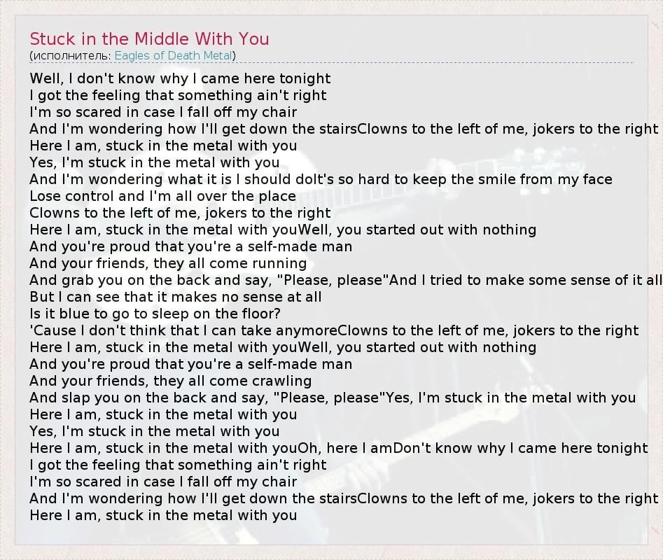 А как ты думаешь, о чем песня "Stuck in the Middle With You" ?