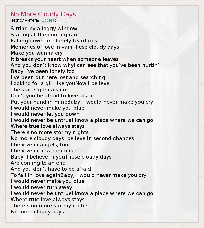 А как ты думаешь, о чем песня "No More Cloudy Days" ?