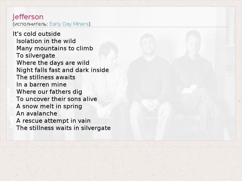 А как ты думаешь, о чем песня "Jefferson" ?