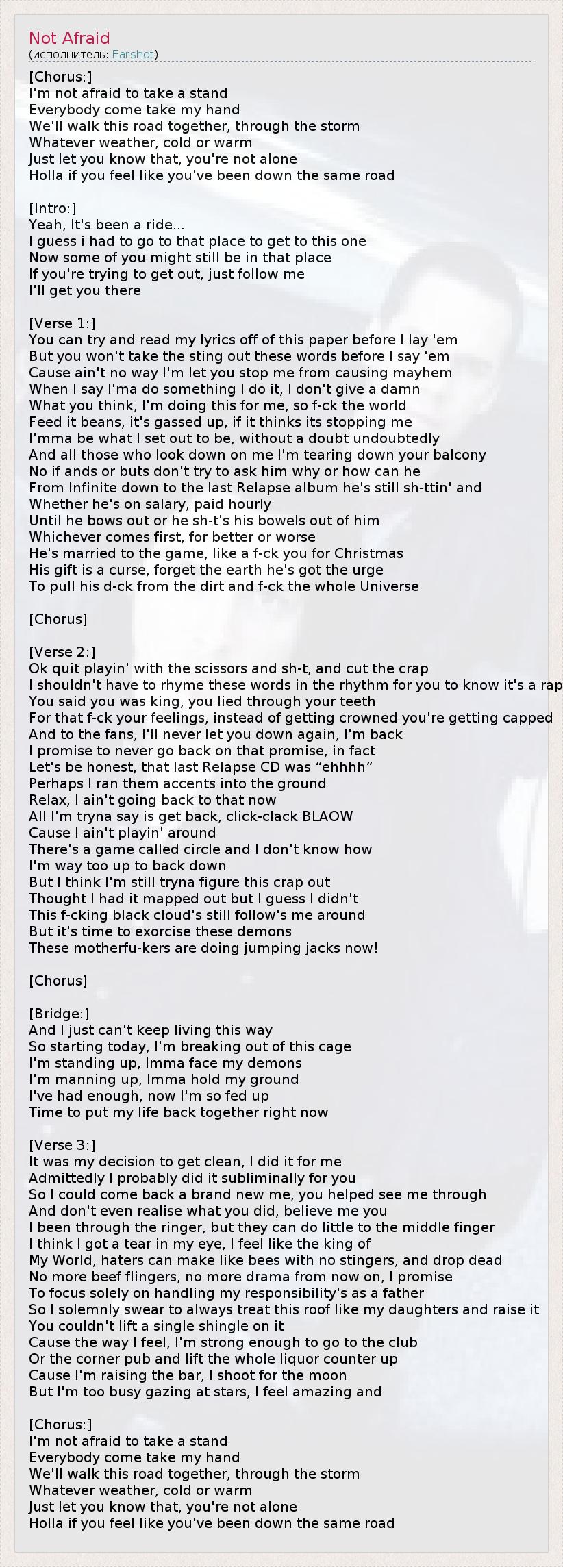 А как ты думаешь, о чем песня "Not Afraid" ?