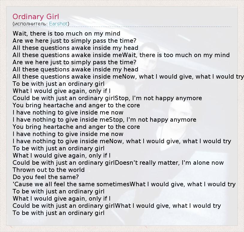 А как ты думаешь, о чем песня "Ordinary Girl" ?