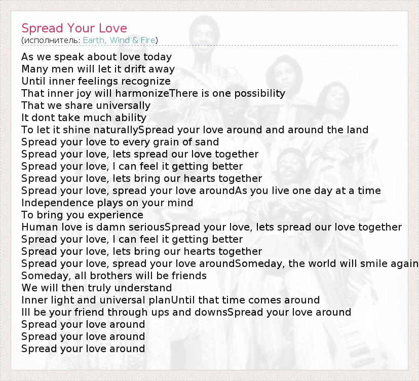 А как ты думаешь, о чем песня "Spread Your Love" ?
