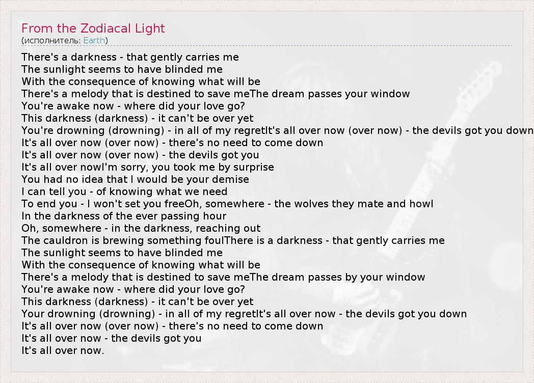 А как ты думаешь, о чем песня "From the Zodiacal Light" ?