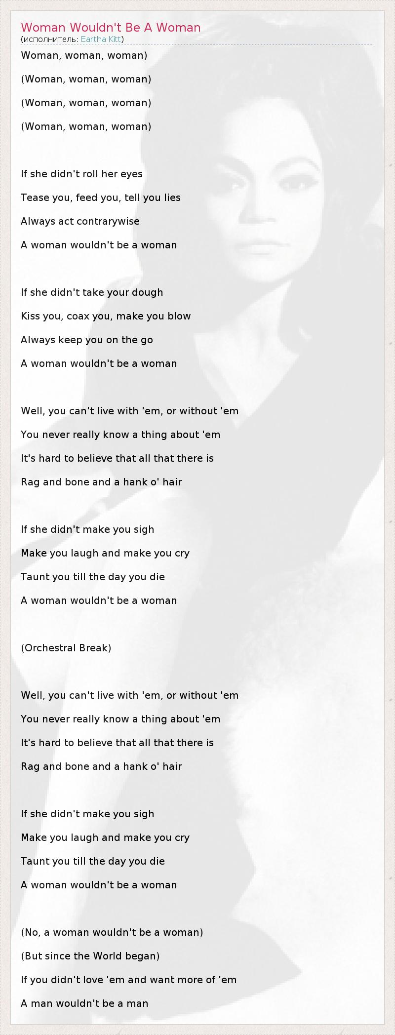 ГлавнаяИсполнителиEartha KittWoman Wouldn't Be A Woman