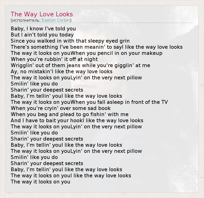 А как ты думаешь, о чем песня "The Way Love Looks" ?