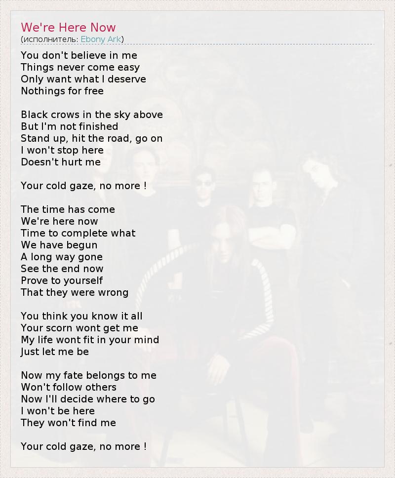 А как ты думаешь, о чем песня "We're Here Now" ?
