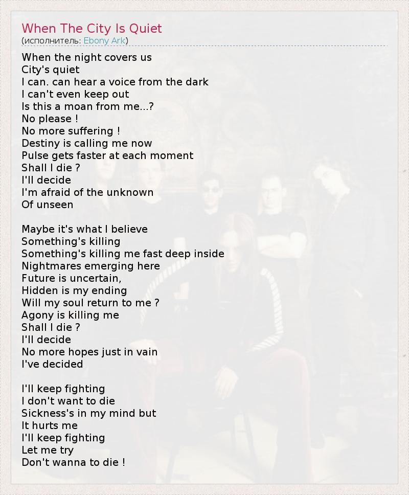 А как ты думаешь, о чем песня "When The City Is Quiet" ?