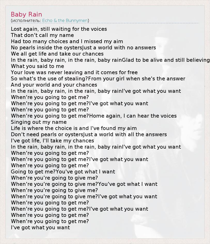 А как ты думаешь, о чем песня "Baby Rain" ?