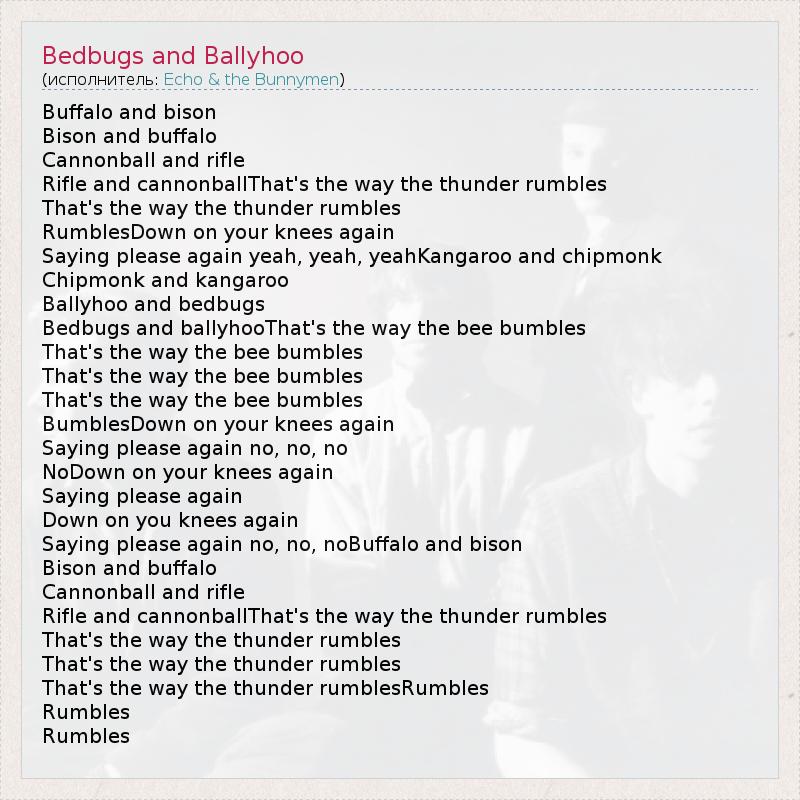 А как ты думаешь, о чем песня "Bedbugs and Ballyhoo" ?