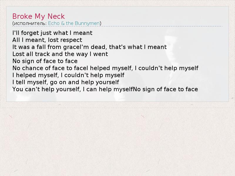 А как ты думаешь, о чем песня "Broke My Neck" ?