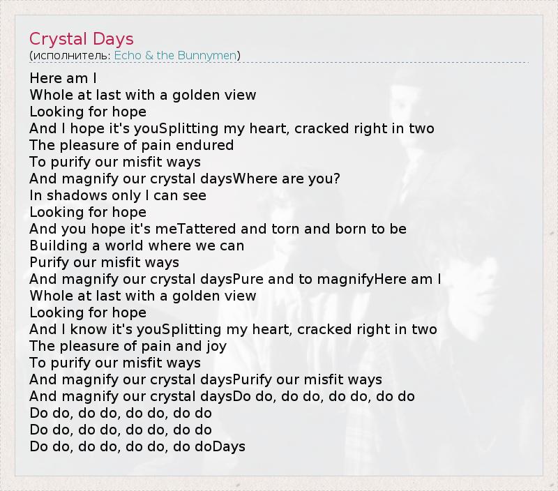 А как ты думаешь, о чем песня "Crystal Days" ?