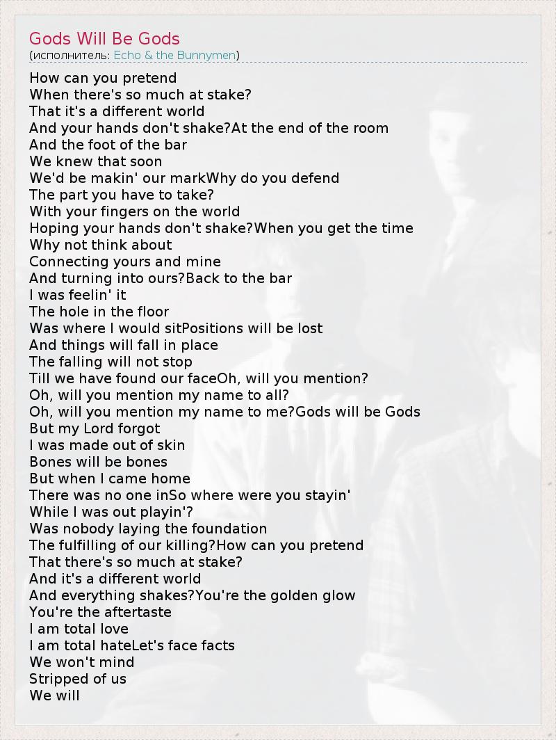 А как ты думаешь, о чем песня "Gods Will Be Gods" ?