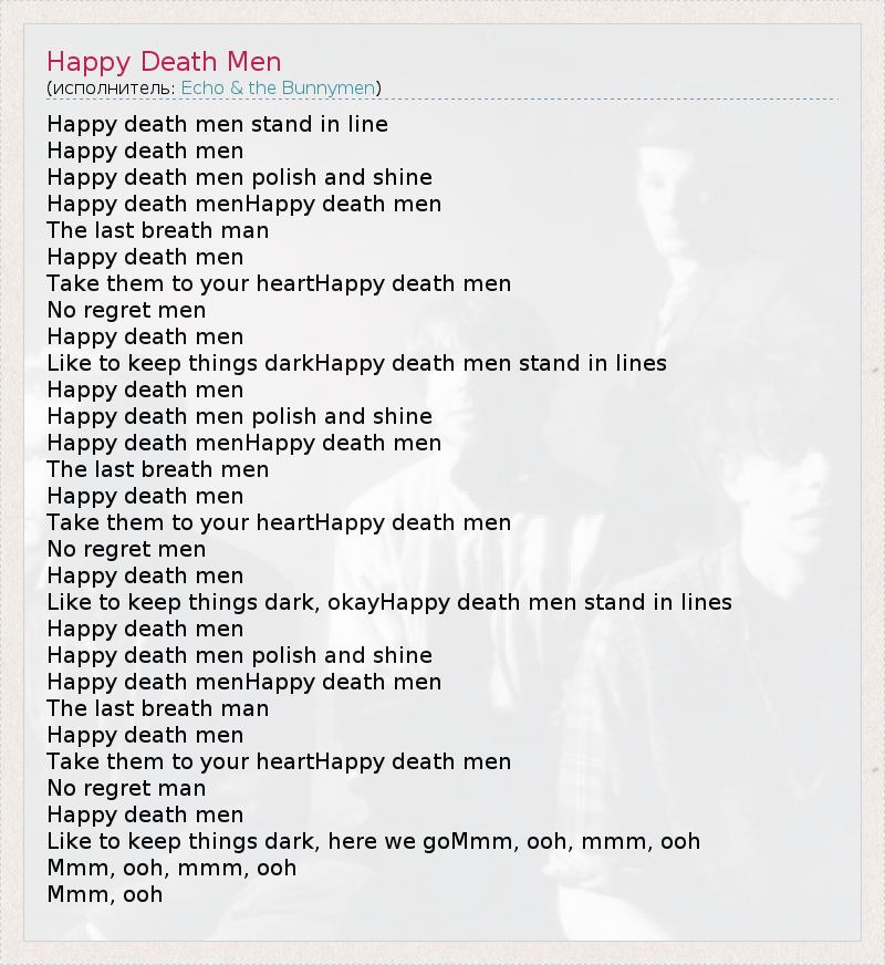 А как ты думаешь, о чем песня "Happy Death Men" ?