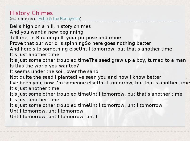 It's just some other troubled timeUntil tomorrow, until tomorrow