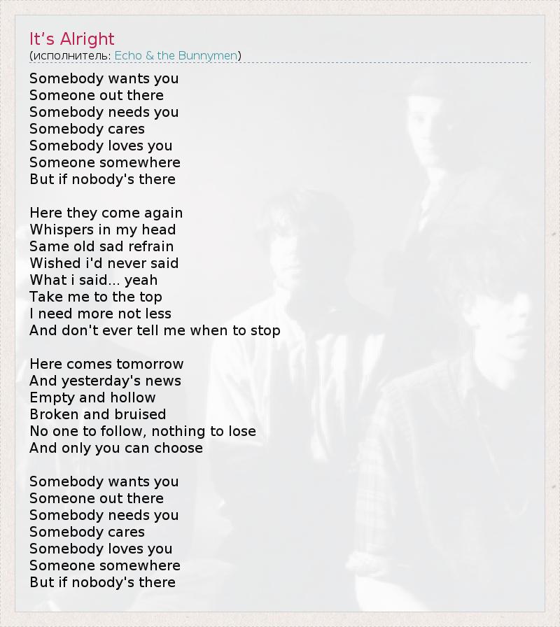 А как ты думаешь, о чем песня "It’s Alright" ?