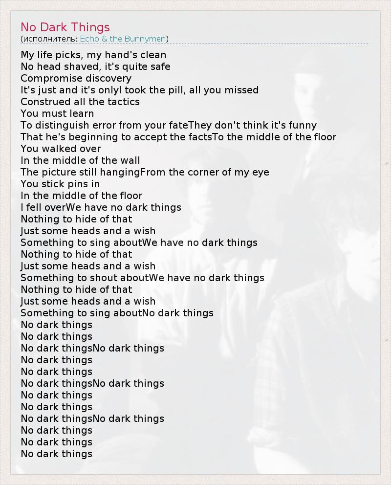 А как ты думаешь, о чем песня "No Dark Things" ?