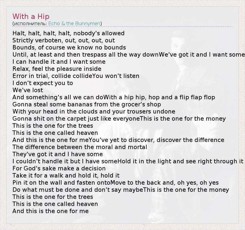 Это интересно:«Echo & The Bunnymen» – ливерпульская рок-группа, в музыке которой соединились сумрачный постпанк и психоделические влияния а-ля «Doors». История группы началась в 1978 году, когда после распада панк-банды «Crucial Tree» вокалист Ян МакКаллох и гитарист Уилл Сарджент организовали новую команду. Дополнив состав драм-машиной, парни занялись демозаписями, а после появления бас-гитариста Леса Паттинсона... продолжение
