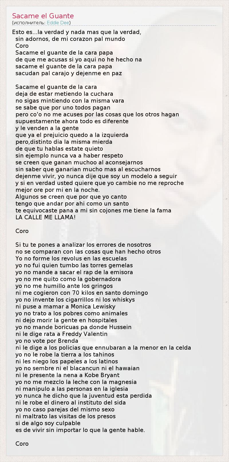 А как ты думаешь, о чем песня "Sacame el Guante" ?