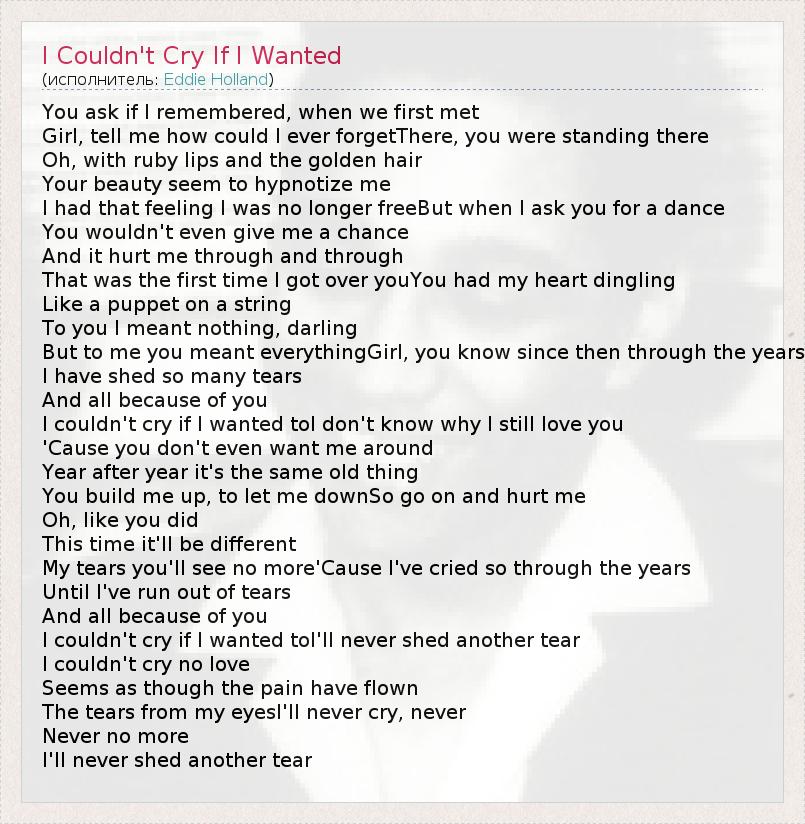 А как ты думаешь, о чем песня "I Couldn't Cry If I Wanted" ?
