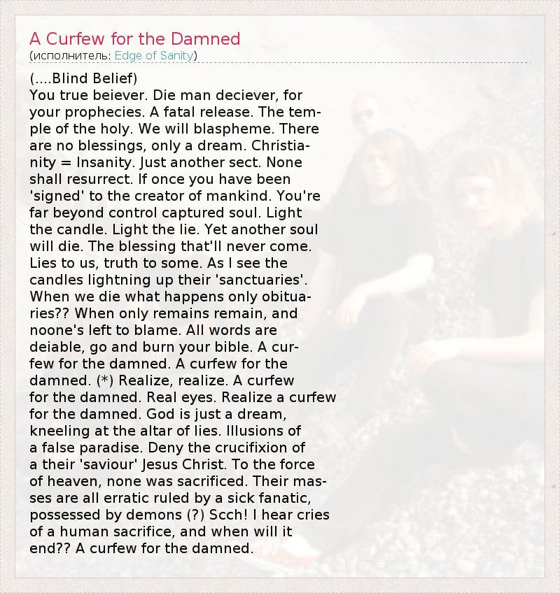А как ты думаешь, о чем песня "A Curfew for the Damned" ?