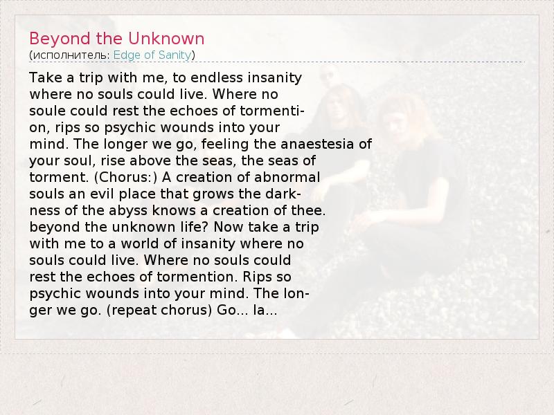 А как ты думаешь, о чем песня "Beyond the Unknown" ?