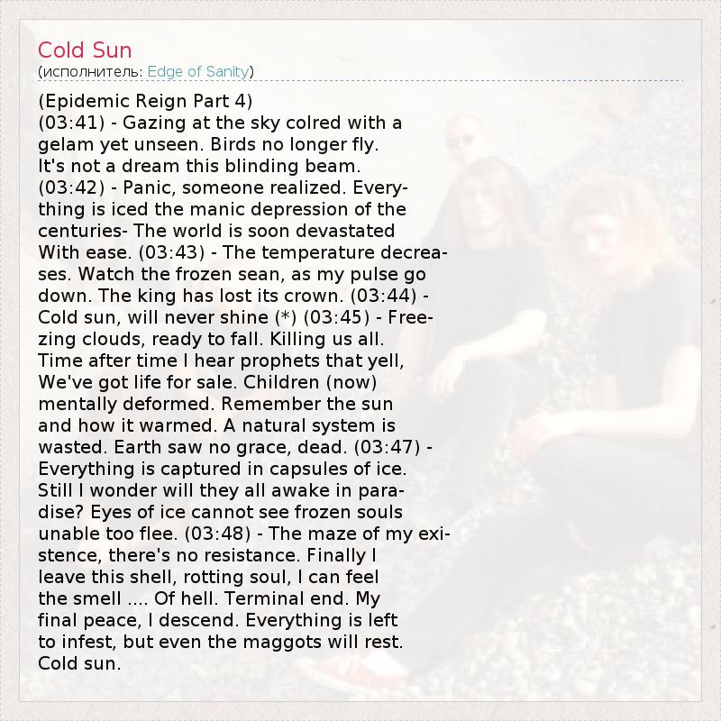 А как ты думаешь, о чем песня "Cold Sun" ?