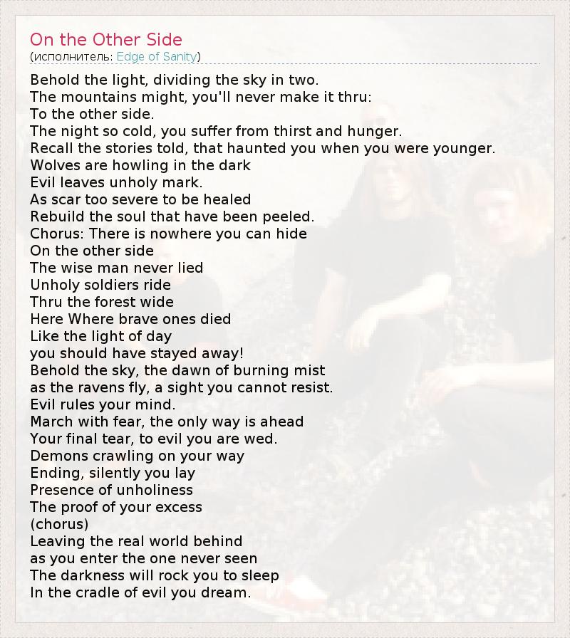 А как ты думаешь, о чем песня "On the Other Side" ?
