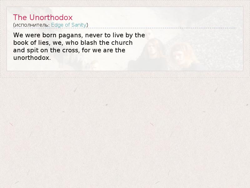 А как ты думаешь, о чем песня "The Unorthodox" ?