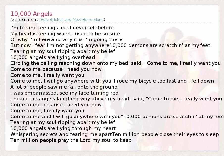 А как ты думаешь, о чем песня "10,000 Angels" ?