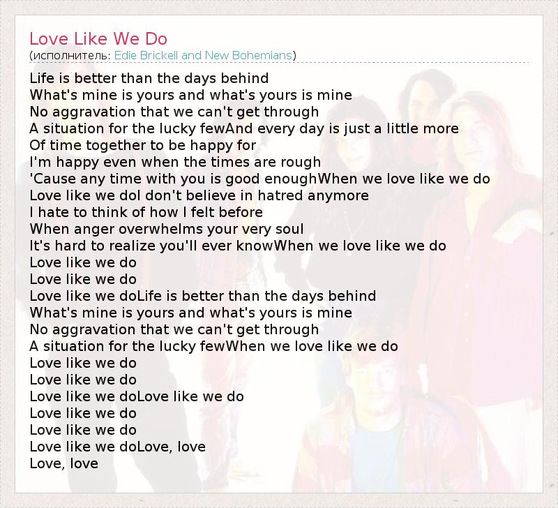 А как ты думаешь, о чем песня "Love Like We Do" ?