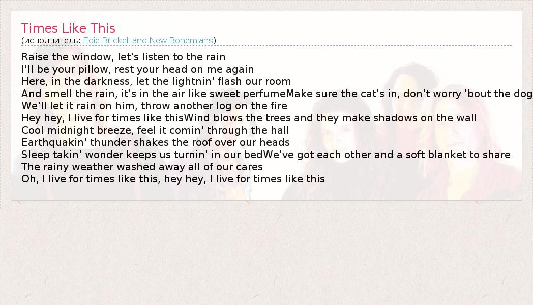 Hey hey, I live for times like thisWind blows the trees and they make shadows on the wall