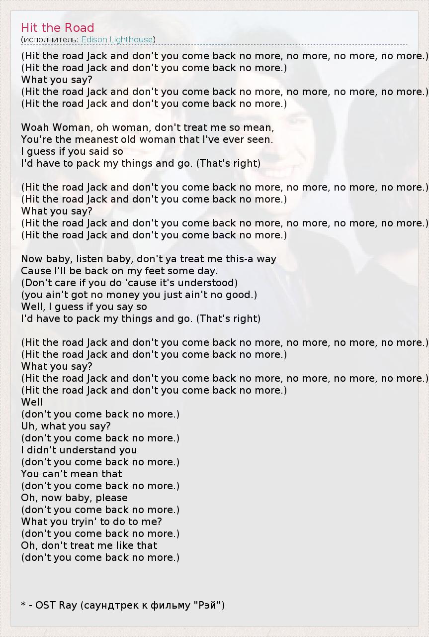 (Hit the road Jack and don't you come back no more, no more, no more, no more.)