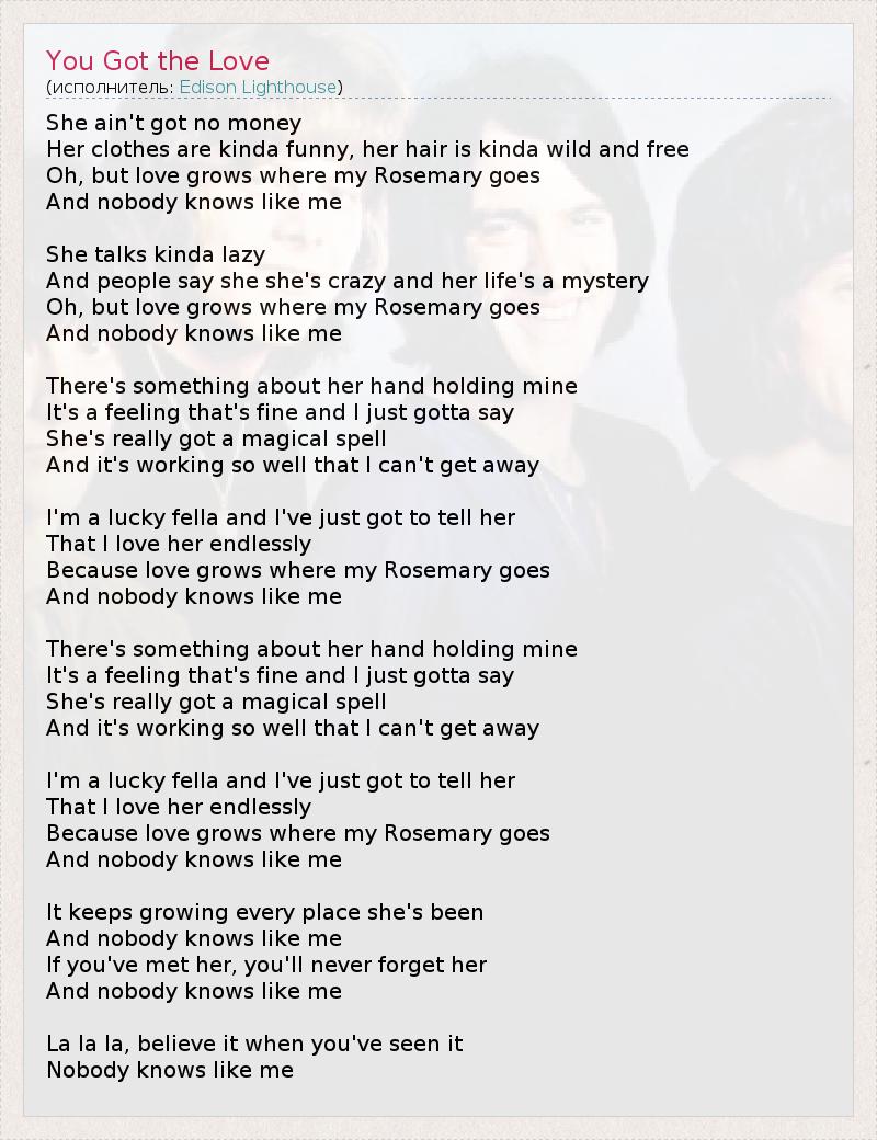 А как ты думаешь, о чем песня "You Got the Love" ?
