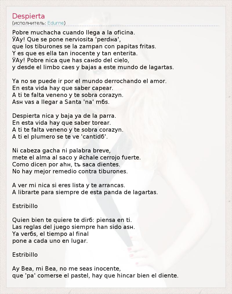Это интересно:Edurne (Эдурне Гарсия Алмагро), которая родилась в Мадриде 22 декабря 1985 года.Эдурне с раннего детства увлекается музыкой – ходит с родителями в караоке, принимает участие в прослушиваниях и кастингах. Когда девочке исполнилось девять, она стала участницей группы «Trastos» (3 альбома) и сыграла небольшие роли в нескольких сериалах.В 2005 году начинается профессиональная карьера Edurne. Тогда... продолжение