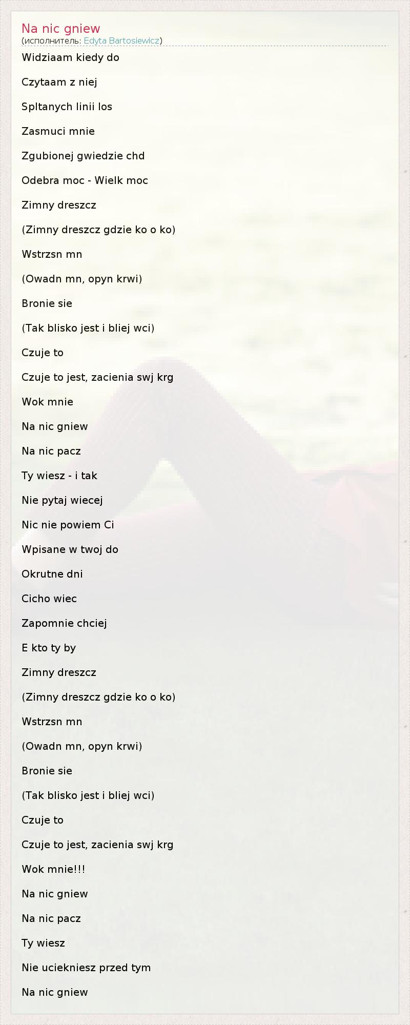 А как ты думаешь, о чем песня "Na nic gniew" ?