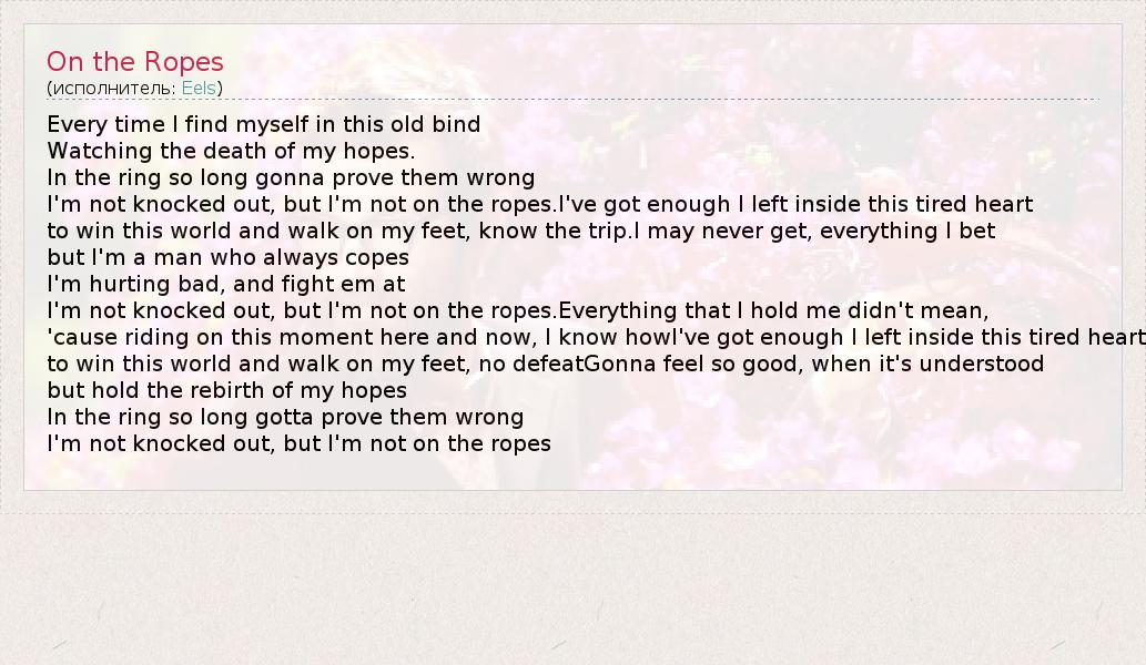 А как ты думаешь, о чем песня "On the Ropes" ?