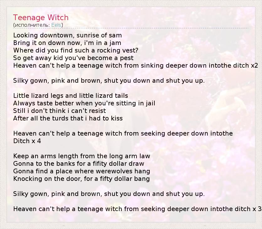 А как ты думаешь, о чем песня "Teenage Witch" ?
