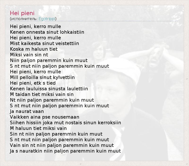 А как ты думаешь, о чем песня "Hei pieni" ?