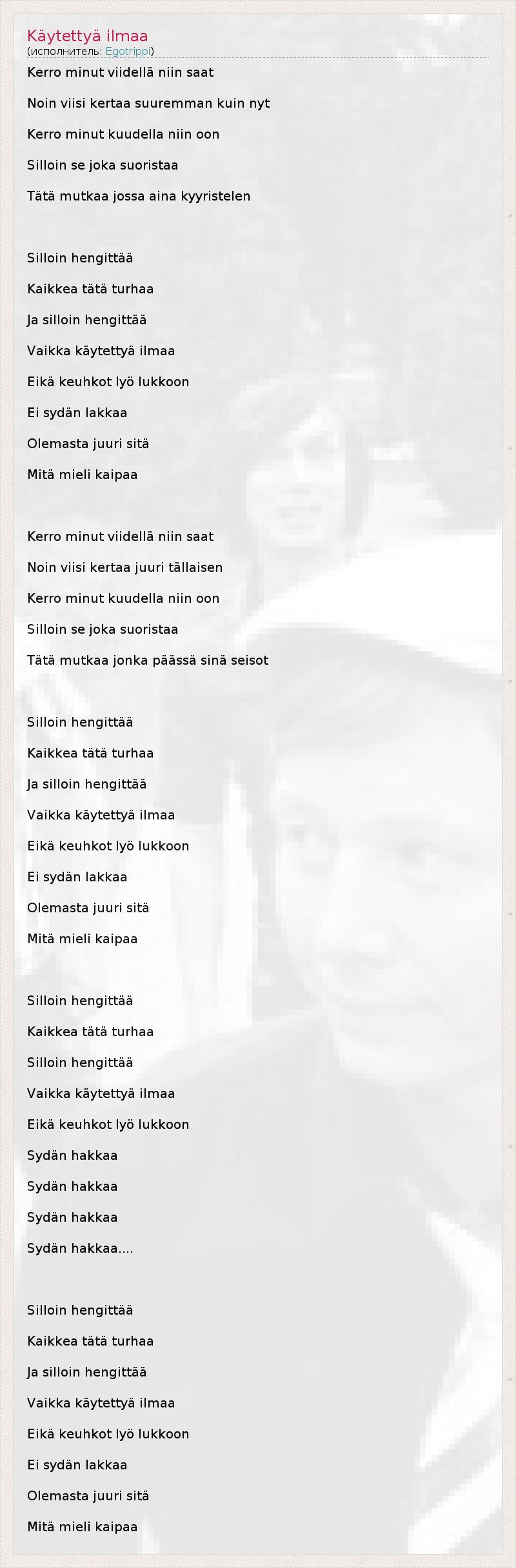 А как ты думаешь, о чем песня "Käytettyä ilmaa" ?