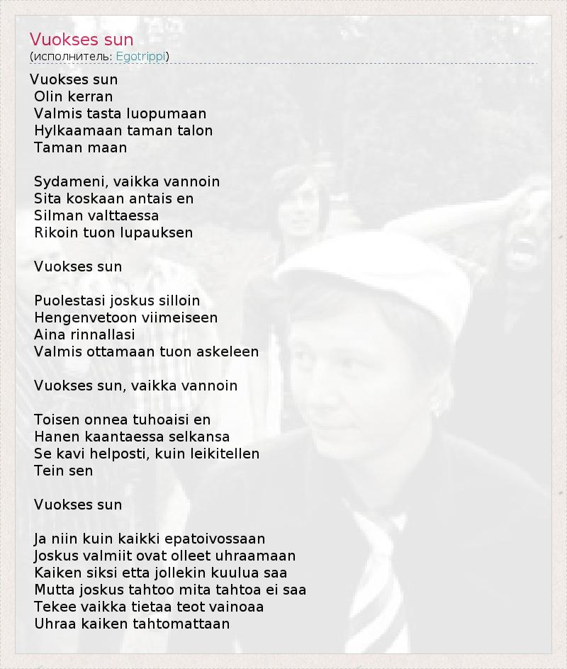 А как ты думаешь, о чем песня "Vuokses sun" ?