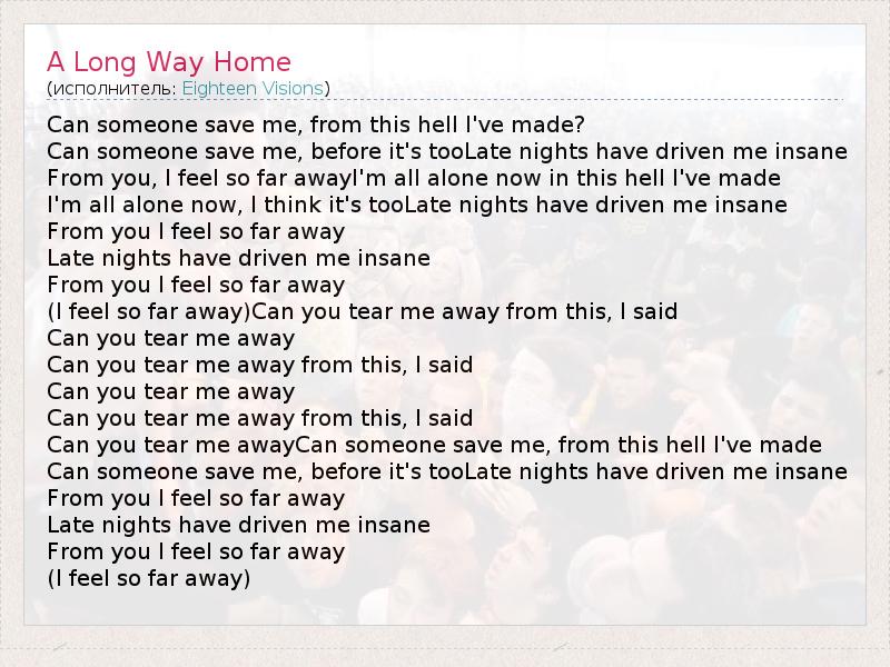 А как ты думаешь, о чем песня "A Long Way Home" ?