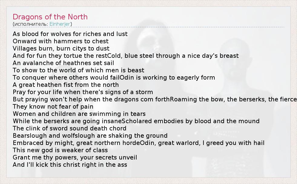 А как ты думаешь, о чем песня "Dragons of the North" ?