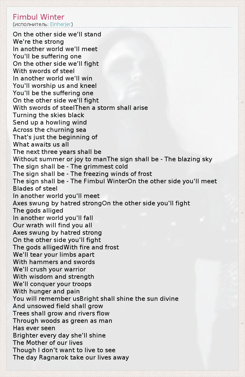 А как ты думаешь, о чем песня "Fimbul Winter" ?