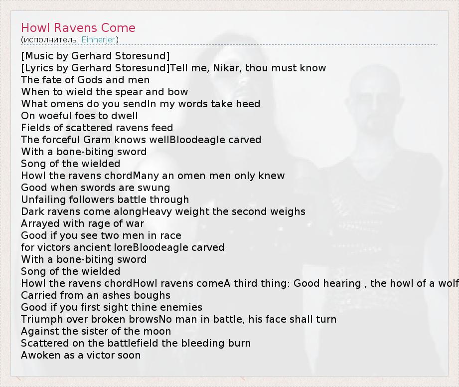 А как ты думаешь, о чем песня "Howl Ravens Come" ?