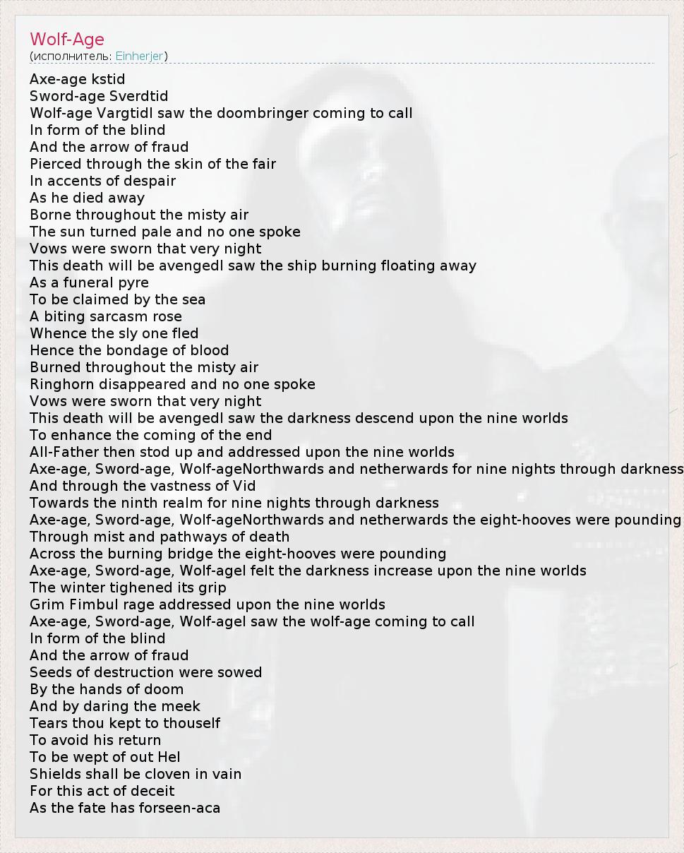 Axe-age, Sword-age, Wolf-ageI saw the wolf-age coming to call