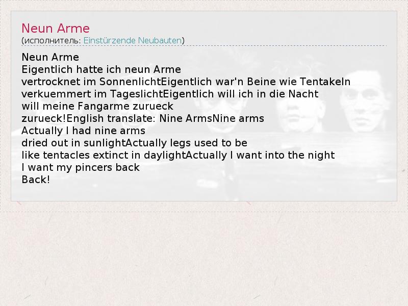 А как ты думаешь, о чем песня "Neun Arme" ?