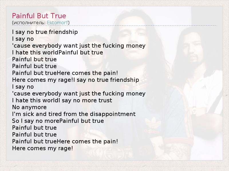 А как ты думаешь, о чем песня "Painful But True" ?
