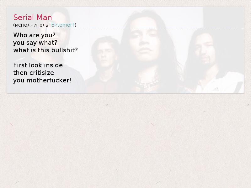 А как ты думаешь, о чем песня "Serial Man" ?