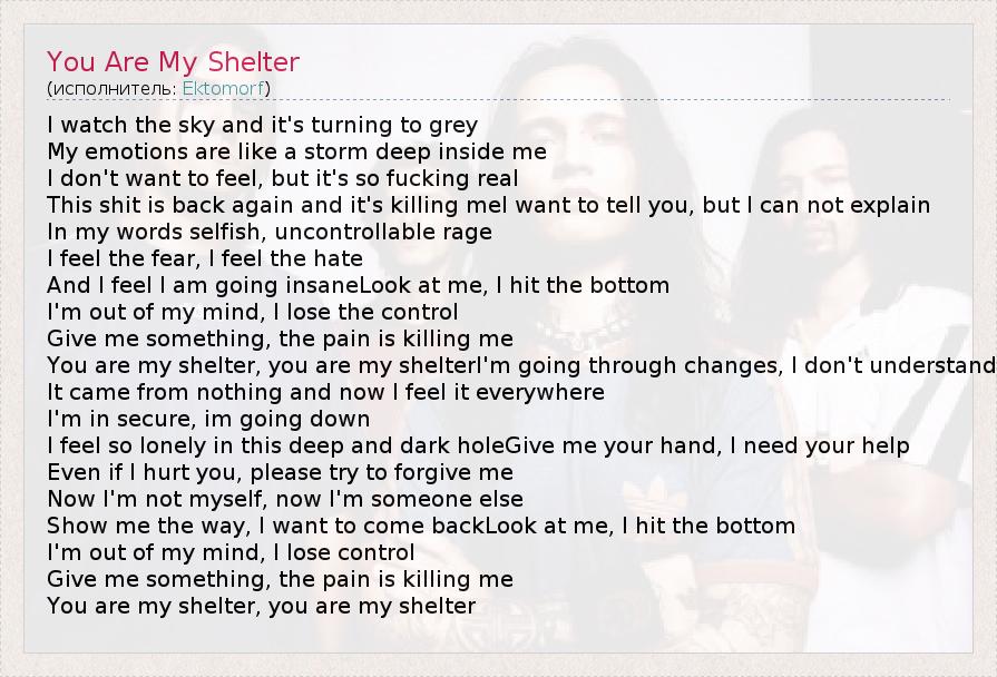 А как ты думаешь, о чем песня "You Are My Shelter" ?